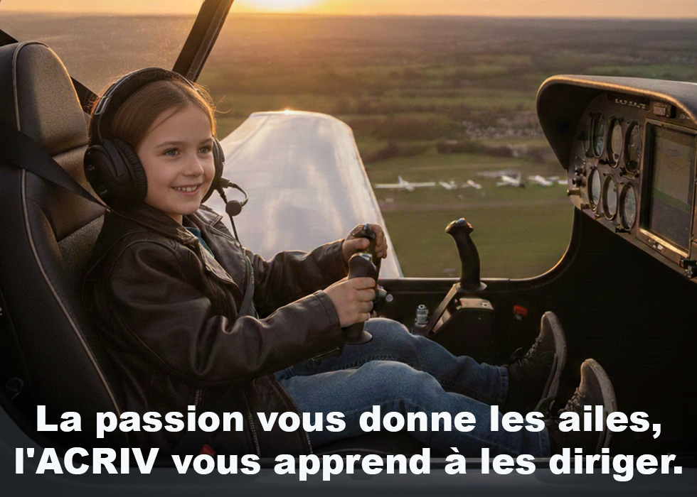 est la devise de l’ACRIV (loi 1901), doté d’une flotte de 9 appareils allant de l’école à la voltige en passant par le voyage et le vol en avion de collection l’ACRIV organise chaque année plus de 3500 heures de vol répartis entre les pilotes brevetés et les pilotes en formations encadrés par une quinzaine d’instructeurs.