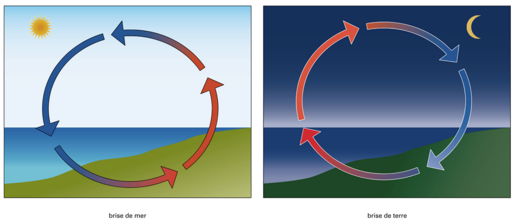Ce sont des vents locaux thermiques, dus aux différences de température entre la terre et la mer.