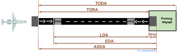 Chaque aérodrome dispose de plusieurs longueurs de référence définies par l’OACI (Annexe 14).