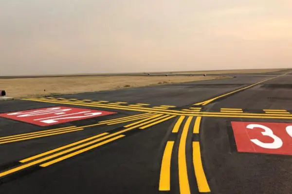 Fin de piste (end marking)Ligne transversale rouge ou noireIndique la fin de la surface utilisable