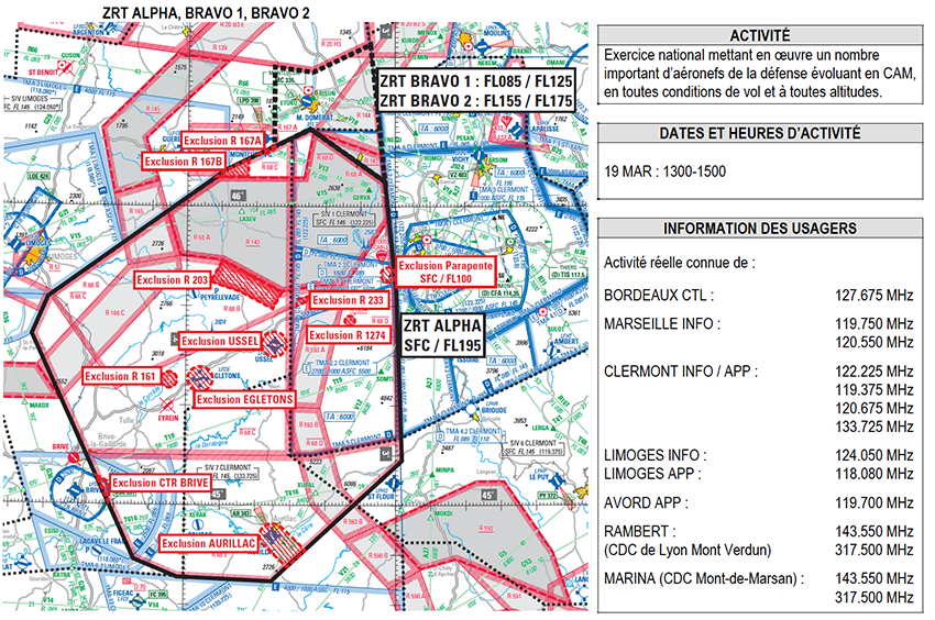 - Certaines zones sont « gérées par accord de coordination », permettant des transits civils lorsque la zone n’est pas active.