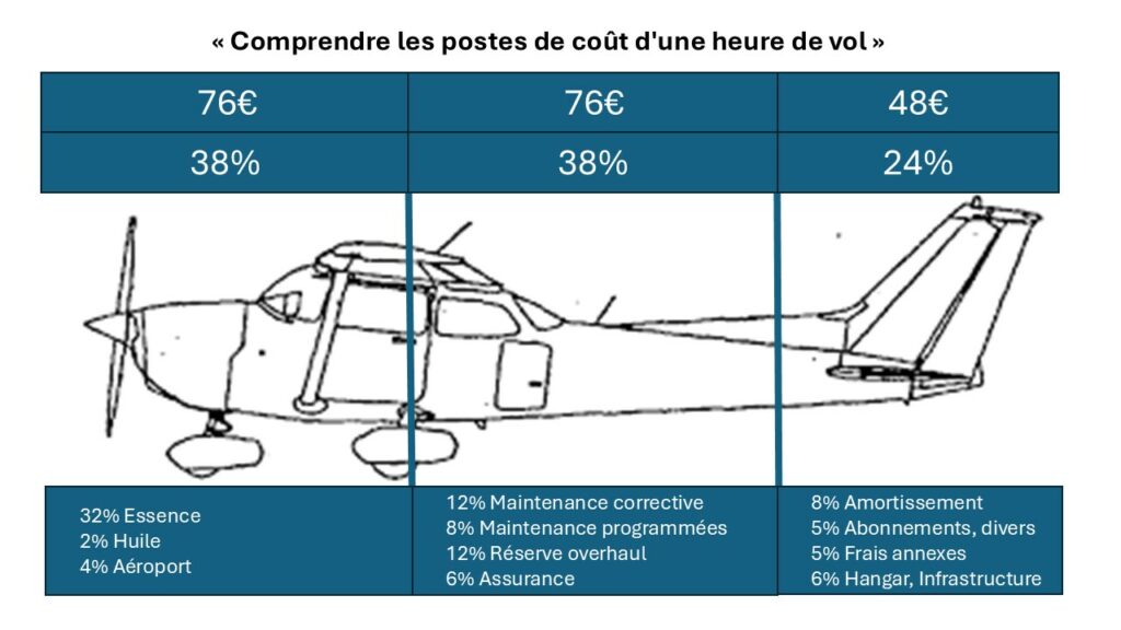 Les montants indiqués sont fournis à titre indicatif, établis sur la base de valeurs moyennes constatées et susceptibles d’évoluer en fonction des variations des postes de coûts (carburant, assurance, maintenance), pour une heure de vol d’exemple à 200 €.