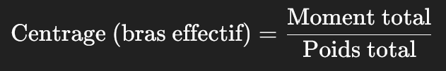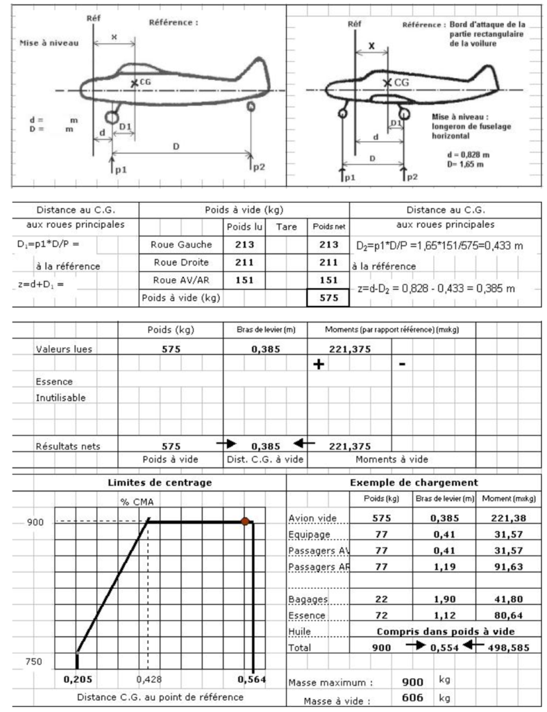 - Le centre de gravité (CG) (ou centrage) se trouve dans les limites autorisées définies par le constructeur.