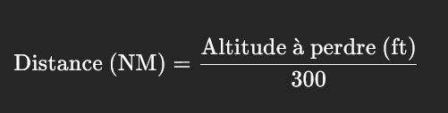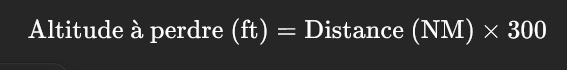→ 6000 ÷ 300 = 20 NM avant le seuil pour commencer ta descente à 3°.