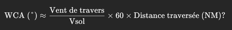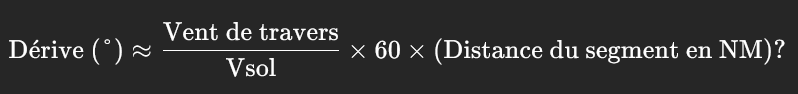 👉 Simplifie : 1° de dérive pour 10 kt de vent de travers à 100 kt.