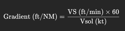 Gradient | À 120 kt (NM/min = 2) | Taux de montée équivalent |