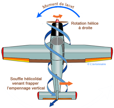 - Sur la plupart des avions à hélice tournant dans le sens horaire (vu du cockpit) :