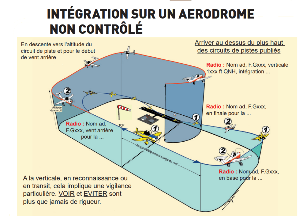 • Une fois clairé, le pilote rejoint le circuit (souvent par la vent arrière main gauche, sauf mention contraire).
